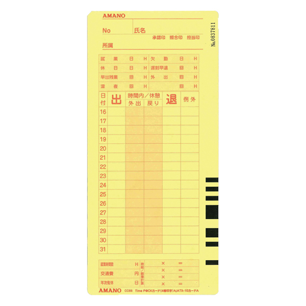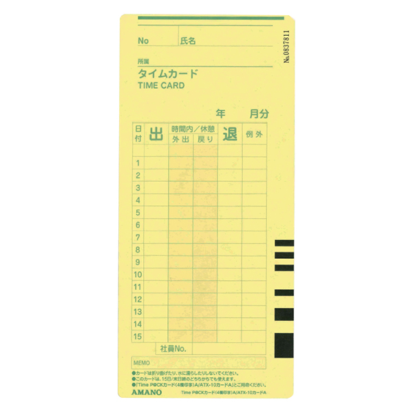 アマノタイムレコーダー TimeP@CKシリーズ および ATX-10用タイムカード