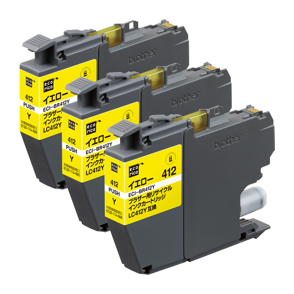 mita トップページ > インク > インクジェットプリンター用インク brother/ブラザー > LC412 > リサイクル品 > エコリカ ECI-BR412Y イエロー LC412Y 対応 リサイクルインク 3本