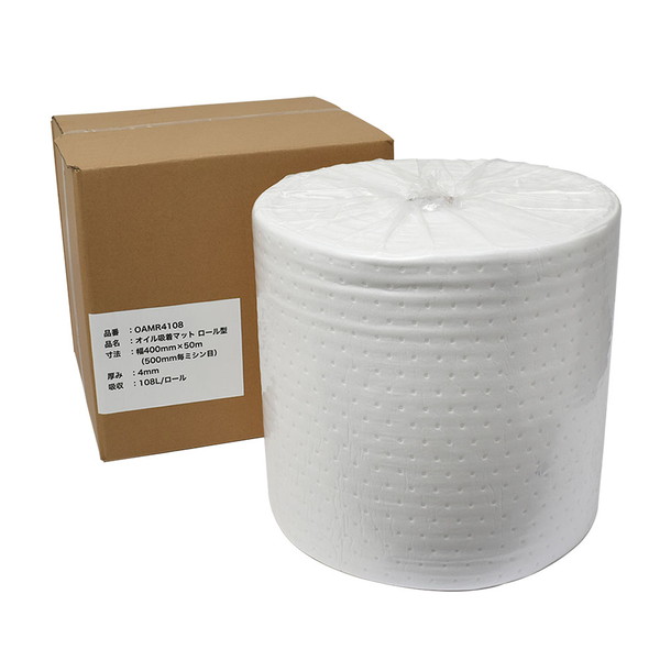 オイル吸着マット 油専用 ロール型 厚4mm 幅400mm×50m (吸収量108L) ミシン目入