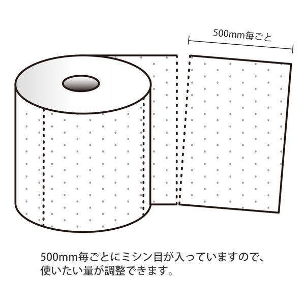 幅400mm x 長さ50mのロングロール。500mm毎にミシン目が入っているため、道具を使わず簡単にカットでき、必要な分だけ無駄なく使えます。