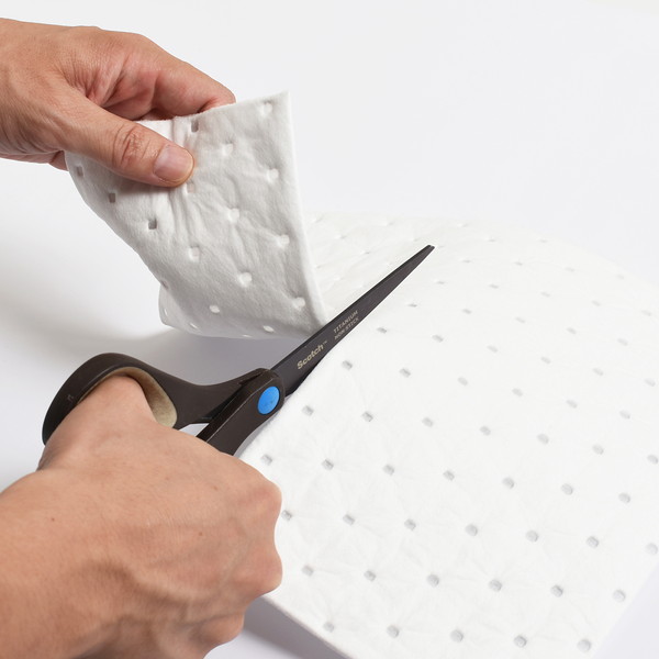 機械油から動植物油まで効率よく吸収する油専用設計。グリーストラップの清掃や床のオイル漏れ防止に最適で、現場のベタつきや転倒事故を防ぎます。