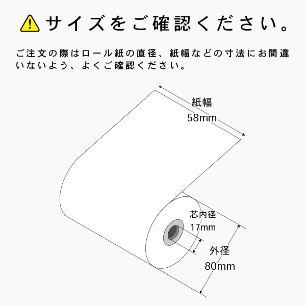 - サイズ : 紙幅:58mm×外径:80mm×内径:17.5mm
